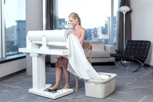 Για παράδειγμα, για το σιδέρωμα των υφασμάτων για δίκλινο δωμάτιο (σεντόνι, παπλωματοθήκη, δύο μαξιλαροθήκες και τέσσερις πετσέτες), ο χρόνος που απαιτείται είναι περίπου 8 λεπτά. Η ίδια εργασία με χειροκίνητο σίδερο γίνεται σε 45 λεπτά.